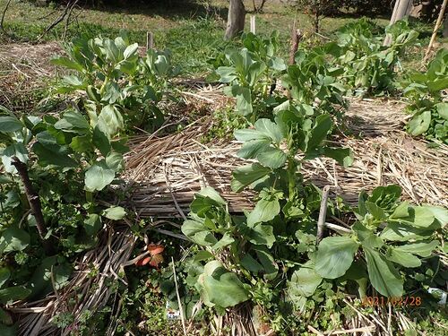 2月28日(日)のことです。 ソラマメのお多福ちゃん、最近の暖かさで元気よくそだっている様子です。何よりも、あの酷かったアブラムシはすっかり姿を消してしまいました。