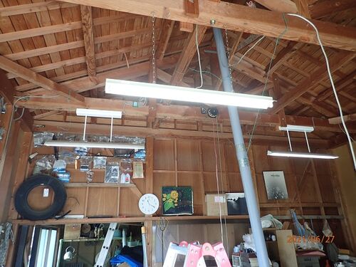6月27日(日)のことです。 最近、車庫での作業が増えて、明るい方が好いよなぁ、そう思ったので、照明器具のLED化をやってしまおうとランプを手配していました。それが届いたのでこの日、
