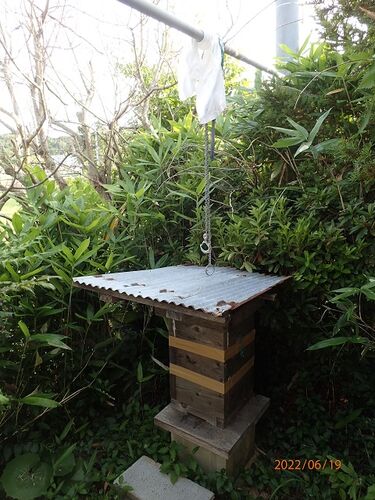 6月19日(日)のことです。 梅干し作りは無事に終えたので気分良く、夕方ミツバチの巣枠をもう一つ入れておくことにしました。流石に前日にやったばかりなので要領は分かっており、準備は直ぐに終わりました。
