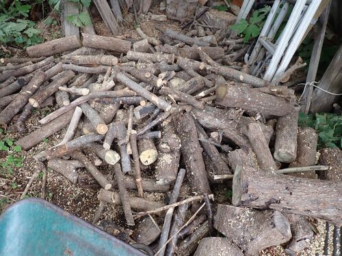 10月19日(日)のことです。 原木置き場にはもう原木は残っていません。そして、薪割り小屋へ移動した原木も玉切りまでは終わっています。この日はそれを機械で割ることにしました。長かった薪割り作業も、いよいよ最後の日が近づいて来ました。