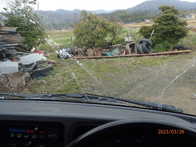 先日、サン婆ーちゃんのフロントガラスが埃で白くなって、見難くなっていたので、ワイパーで掃除しようとしたのですが、水が出ませんでした。と言うことで、この日、ウオッシャー液を補充しておくことにしました。